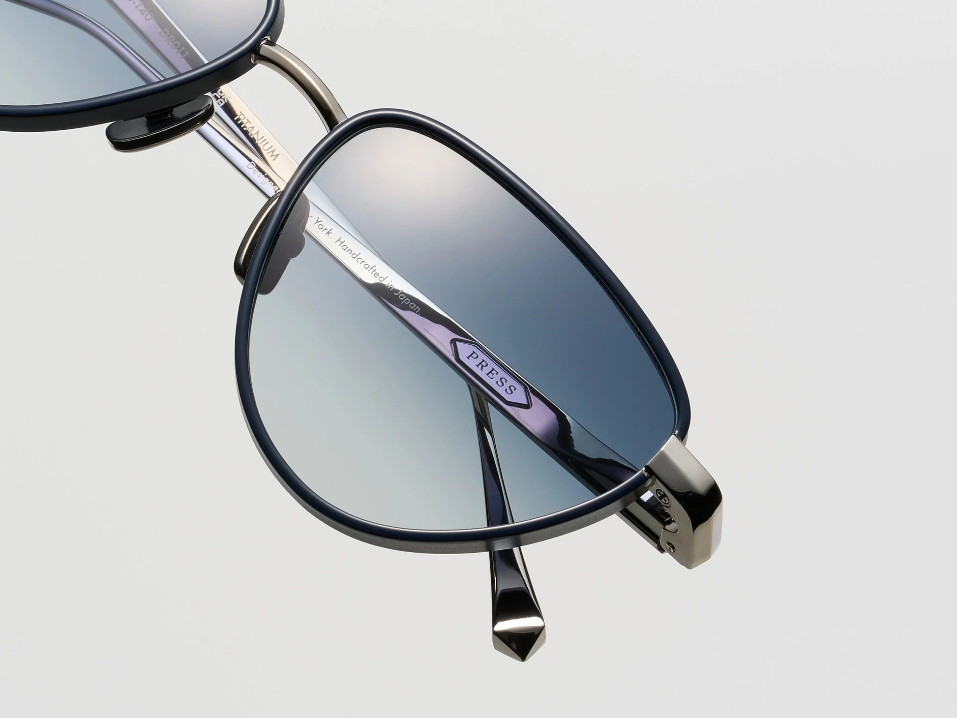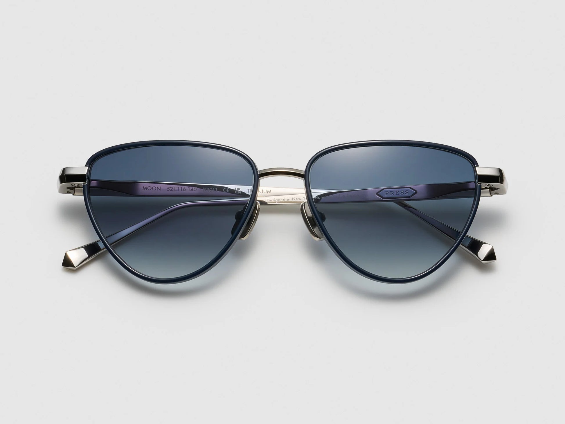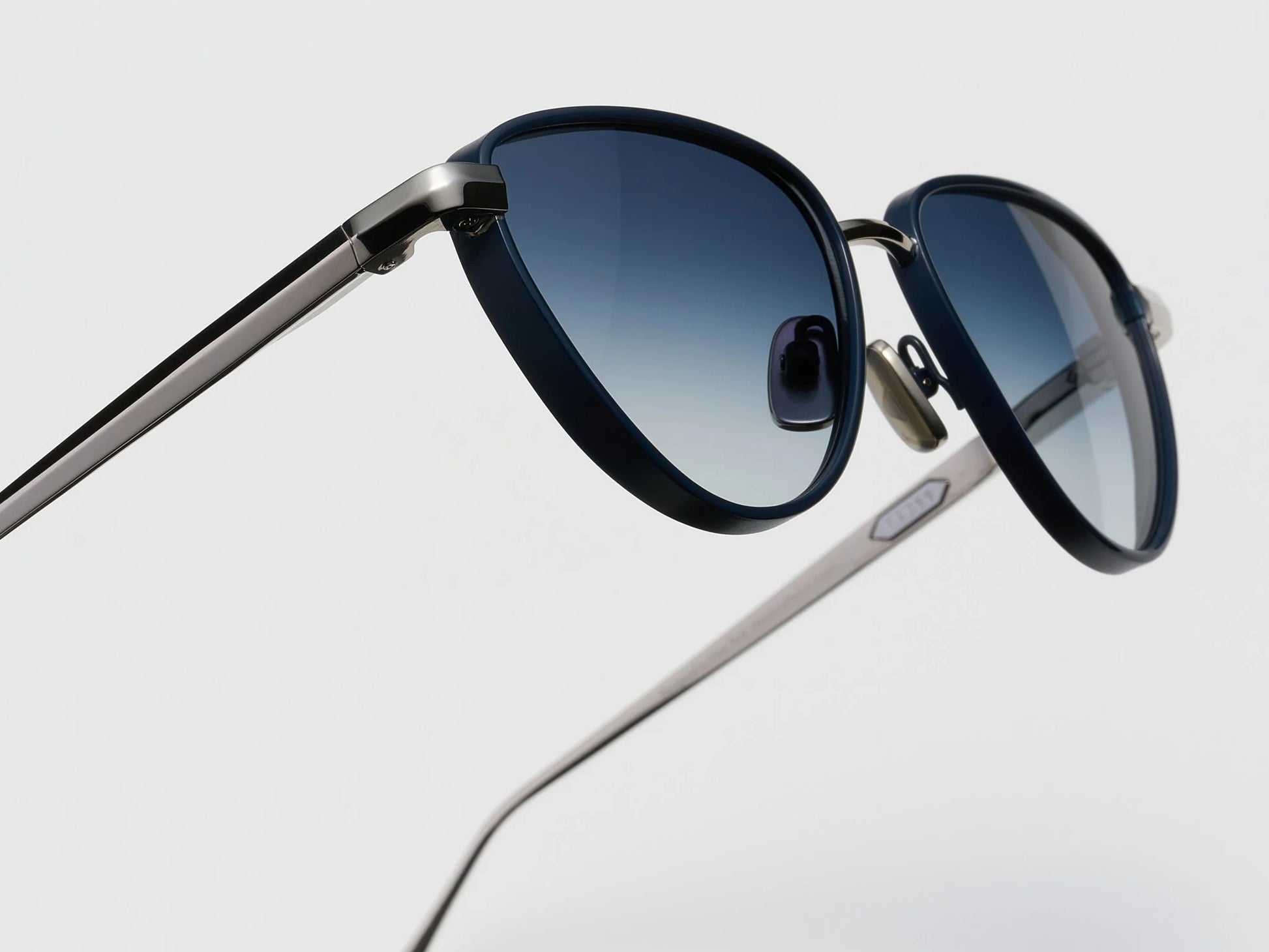 Crafted from pure Japanese titanium, it features a 6mm side shield and a sophisticated triple plating technique that imparts unique coloration to each surface. Equipped with custom silicon-coated nose pads, Zeiss nylon lenses, OBE spring hinges, and flawless balance, this frame is the ultimate blend of classic form and contemporary innovation.