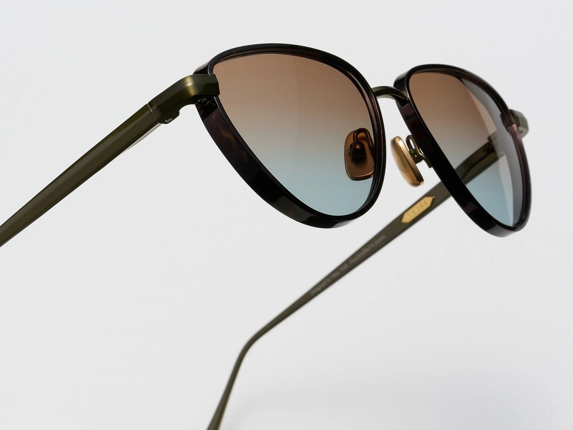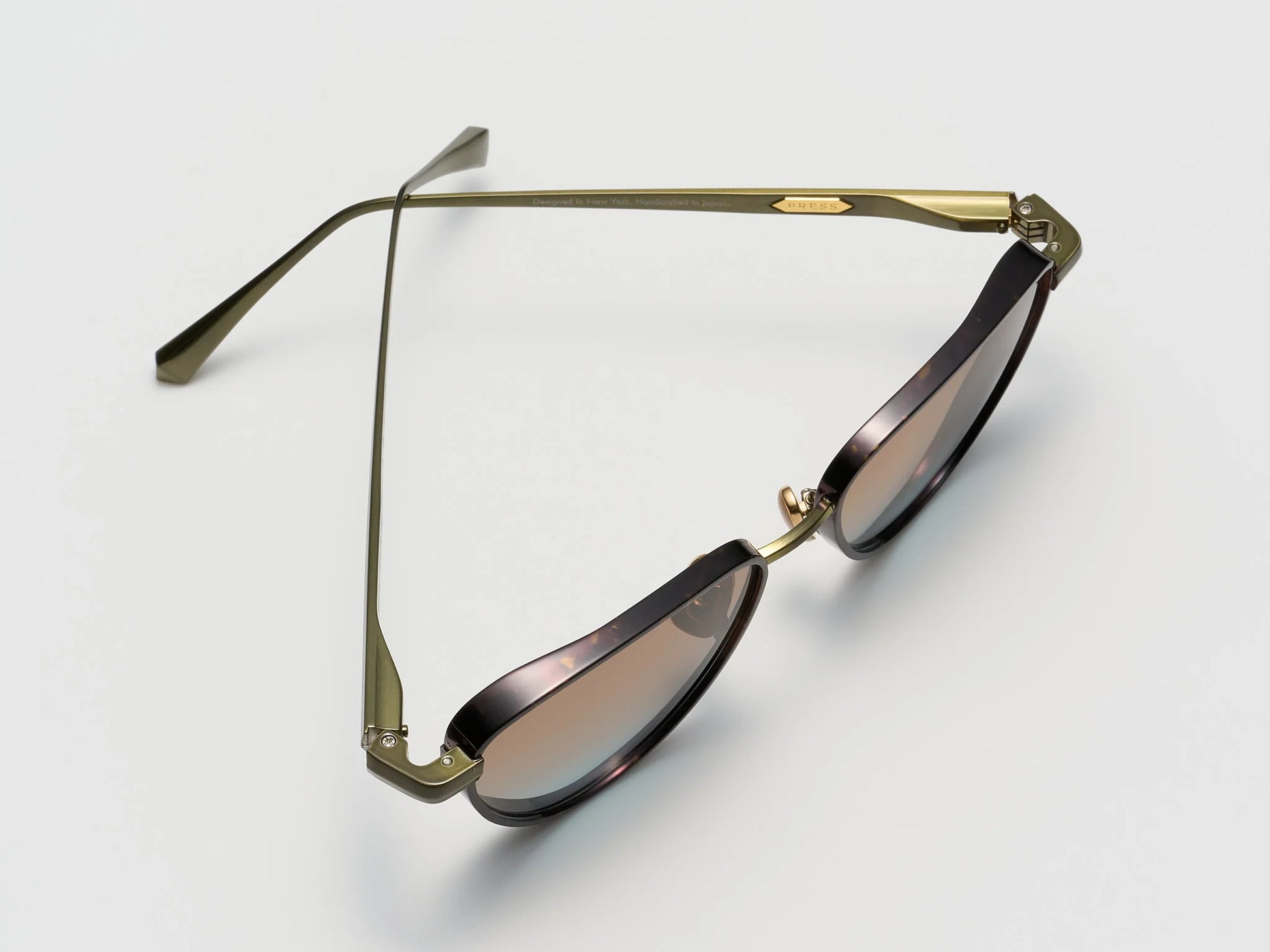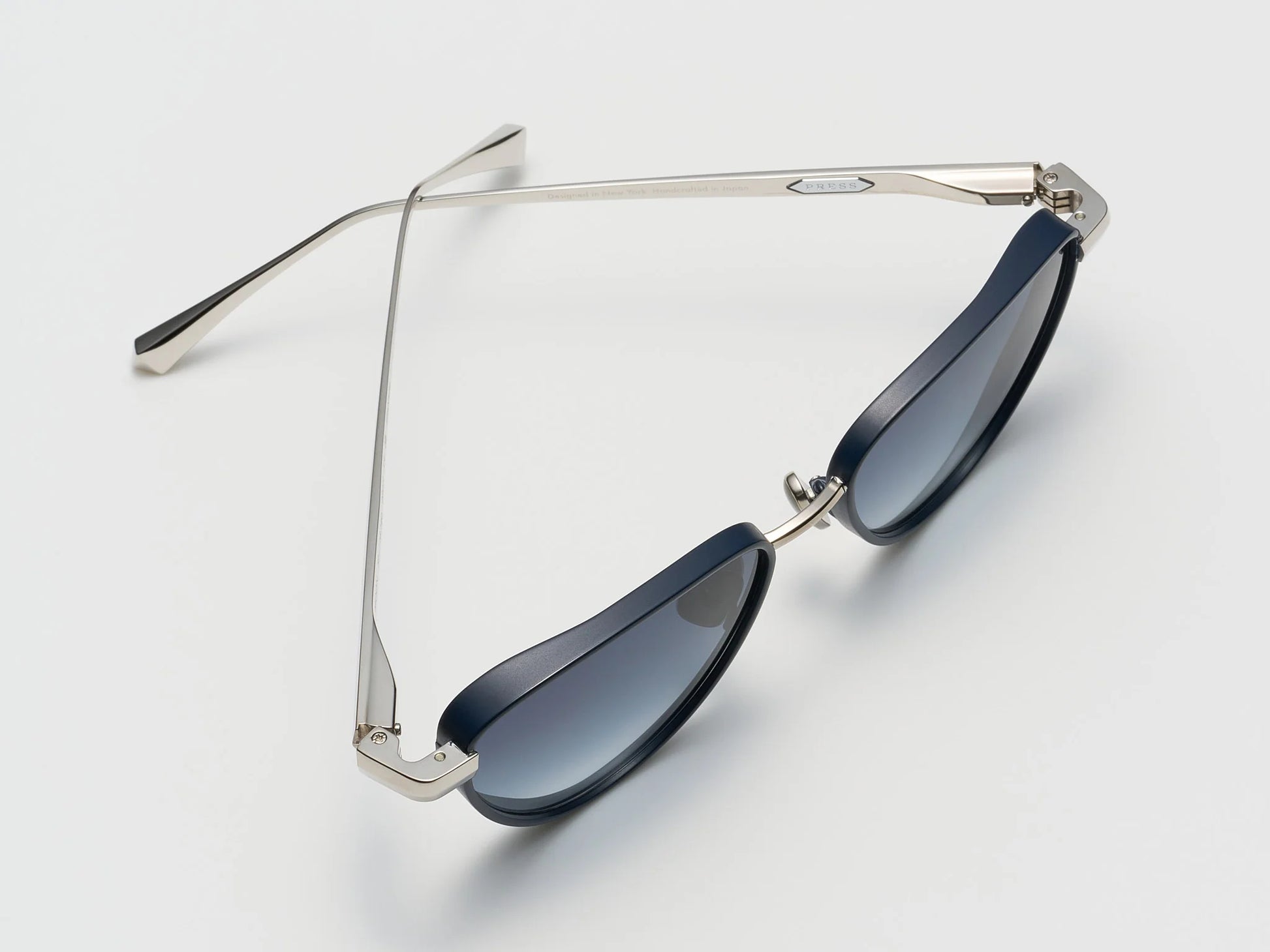 Crafted from pure Japanese titanium, it features a 6mm side shield and a sophisticated triple plating technique that imparts unique coloration to each surface. Equipped with custom silicon-coated nose pads, Zeiss nylon lenses, OBE spring hinges, and flawless balance, this frame is the ultimate blend of classic form and contemporary innovation.