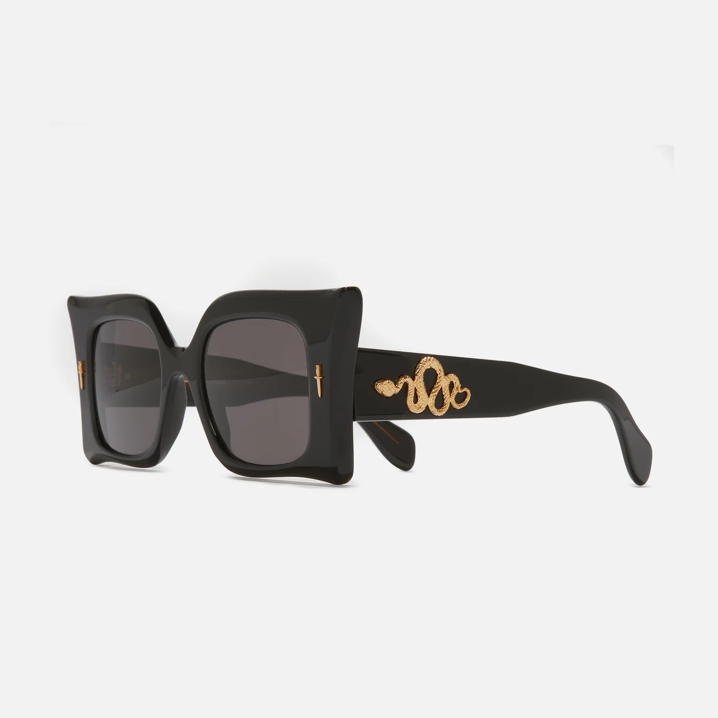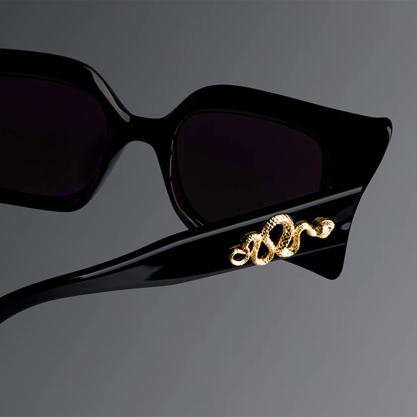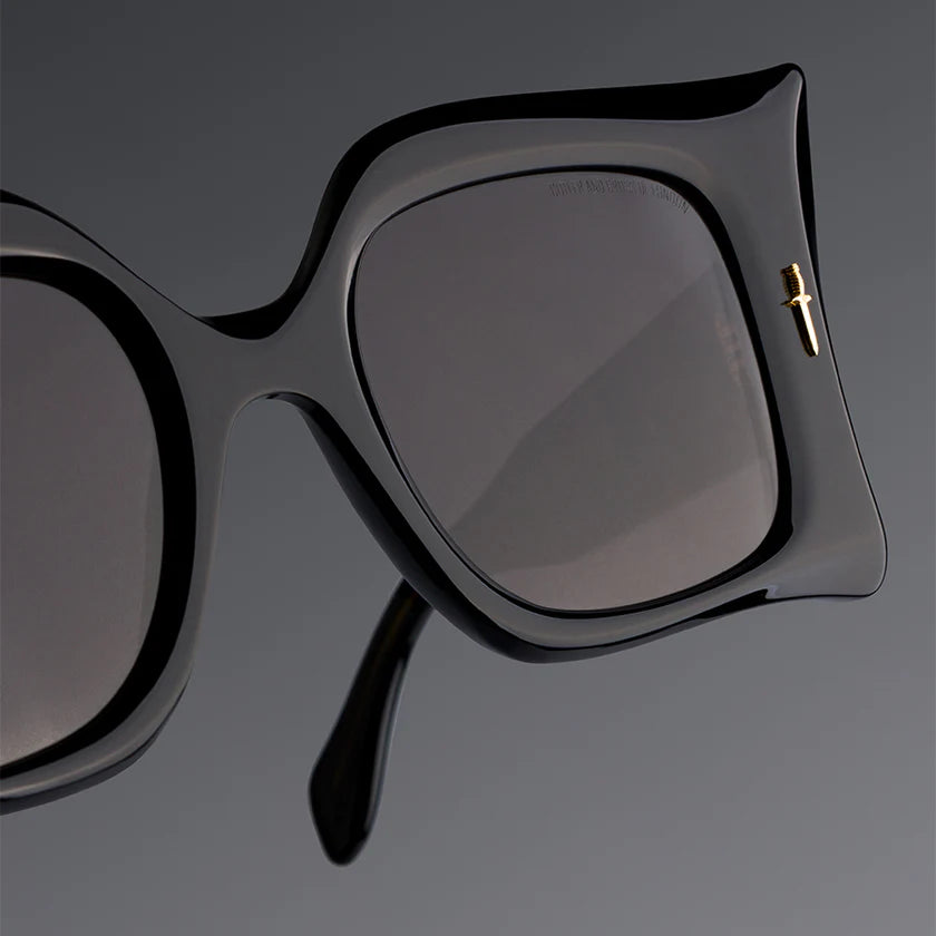 This Limited Edition frame takes artistry into a new realm. Handcrafted in our atelier, the maximalist design is carved and bevelled to a faceted profile worthy of Medusa. The Great Frog's legendary metalwork takes shape in Dagger and Viper pins cast in Sterling Silver and plated in 24K Gold.